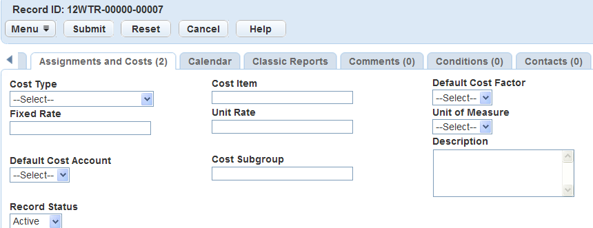 If all of the fields are read-only, and a cost item needs to be updated, please contact your system administrator. |