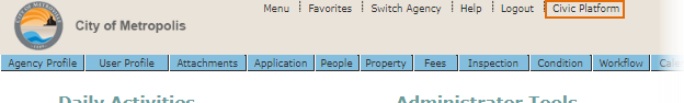 To access Civic Platform Administration from the Oxygen UI: